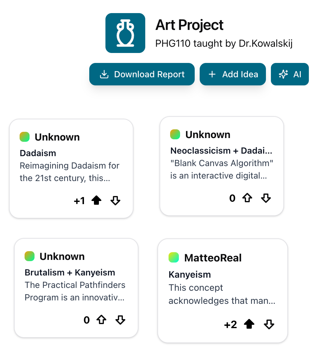 Discuss about project ideas in a team, vote on the ideas to ensure alignment and organize your project implementation optimally.